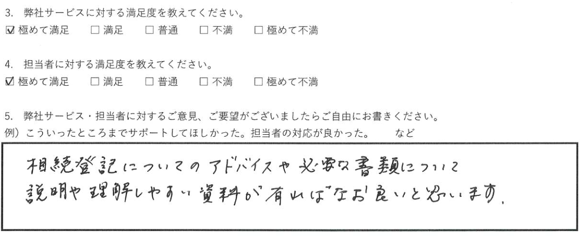 相続登記についてのアドバイスや必要な書類について、説明や理解しやすい資料があればなお良いと思います